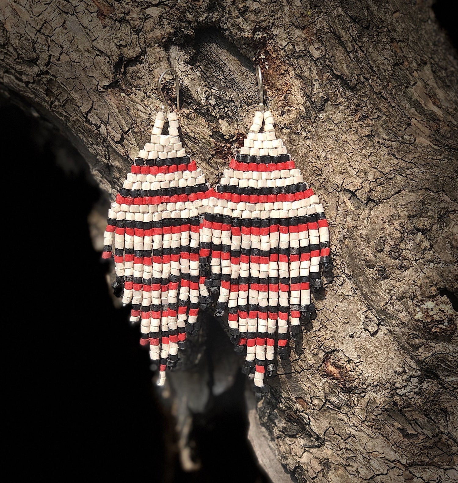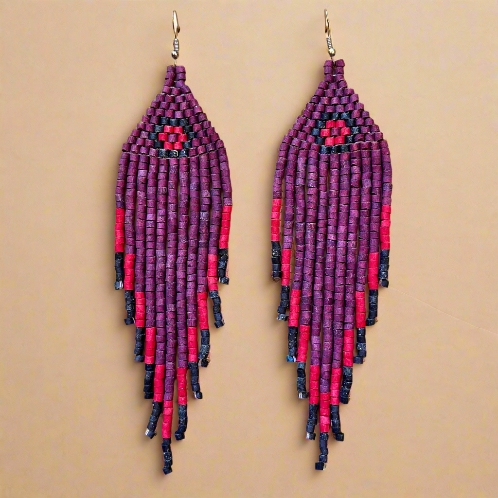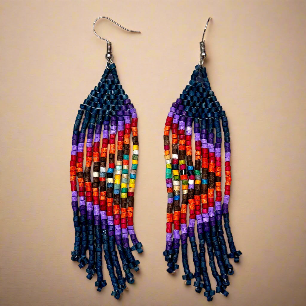 Beaded Fringe Earrings in Boho Zig Zag Design