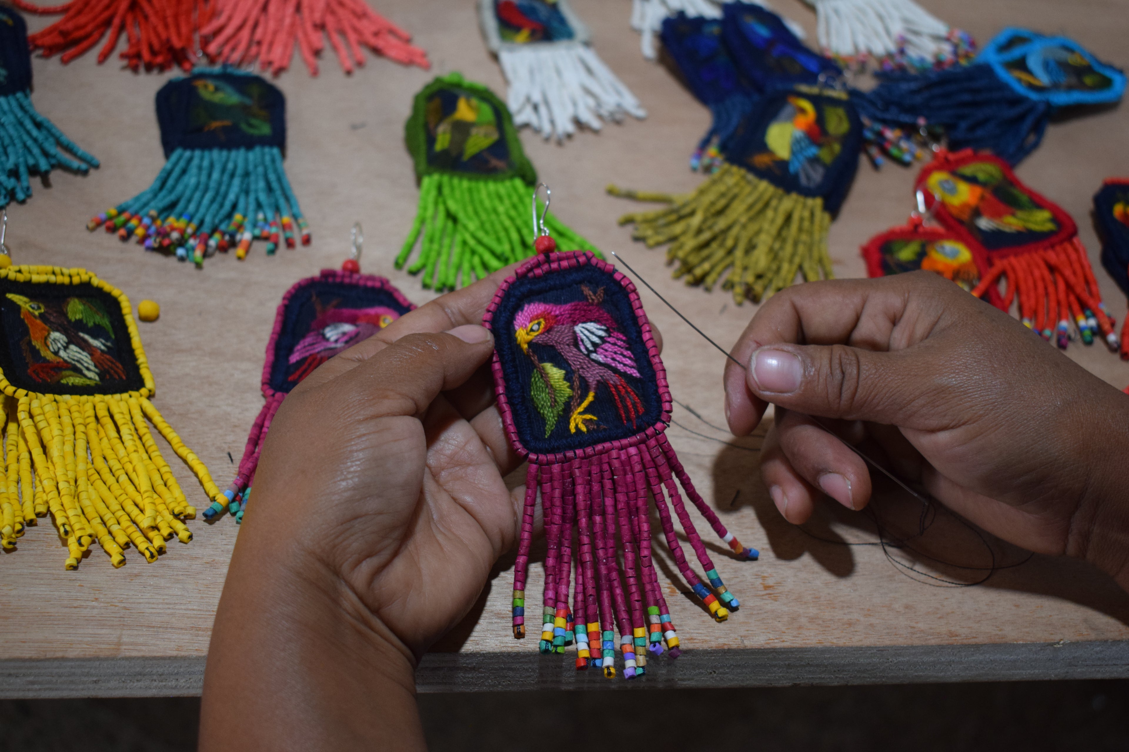 Los Colores de la Tierra is a family business in Guatemala creating handmade ceramic jewelry. Each bead is handmade from clay, dyed with hand-mixed colors, and hand-assembled by skilled Mayan artisans. We run two shops in the heart of Antigua.