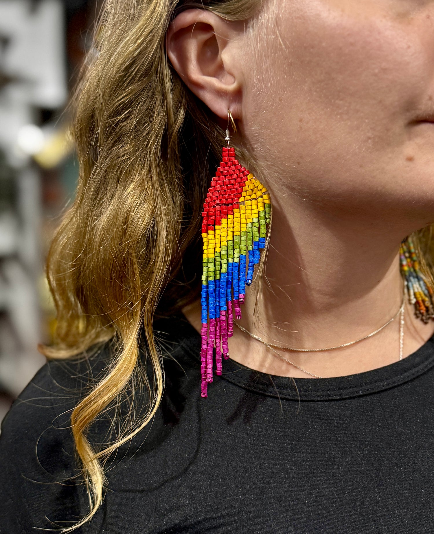 Ceremonial Fringe Earrings OOAK – With Handmade Textile & Ceramic Beads from Guatemala