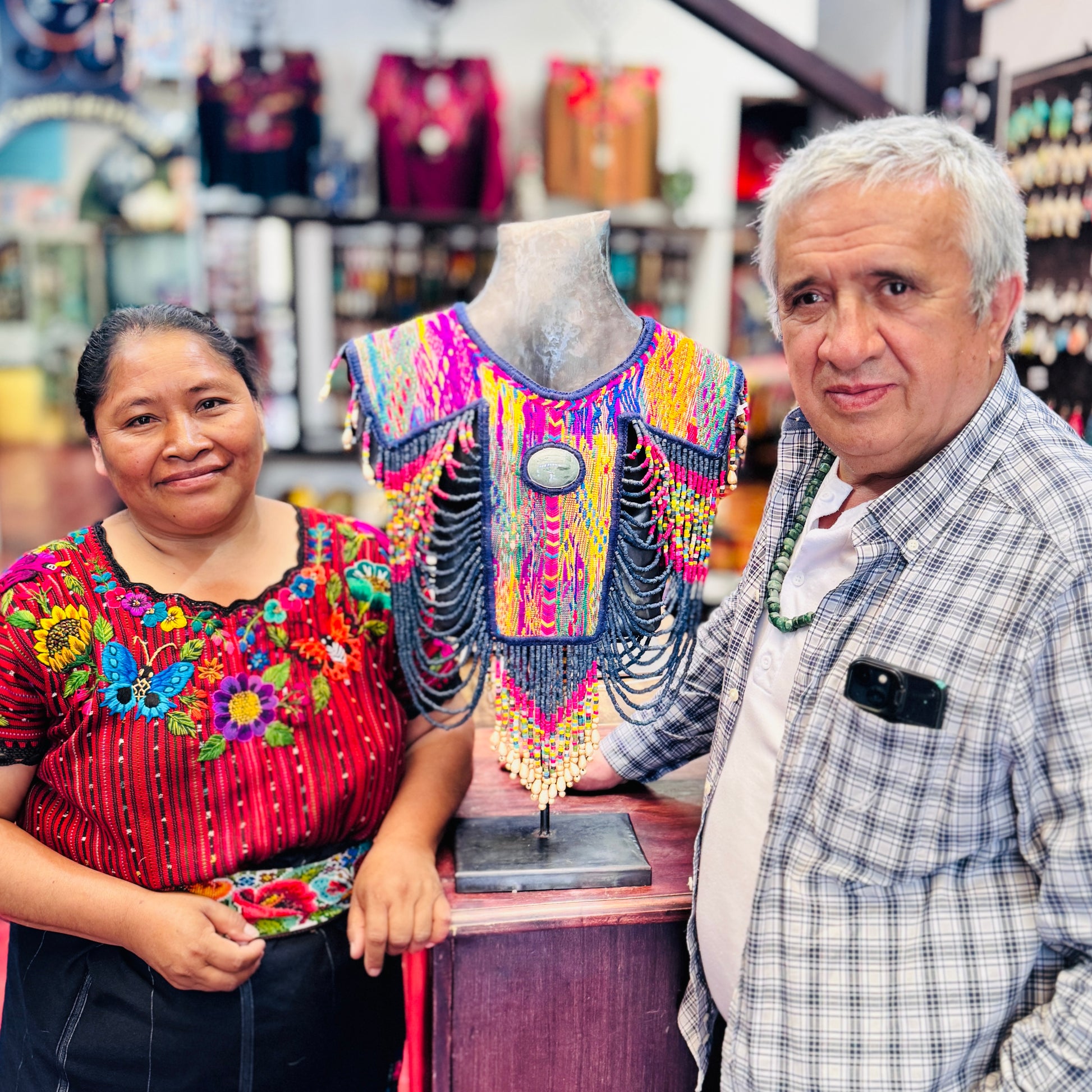 Crafted by skilled Mayan artisans, each piece comes with a handmade "tipico" bag for storage. See photos of the artisan behind your one-of-a-kind creation.