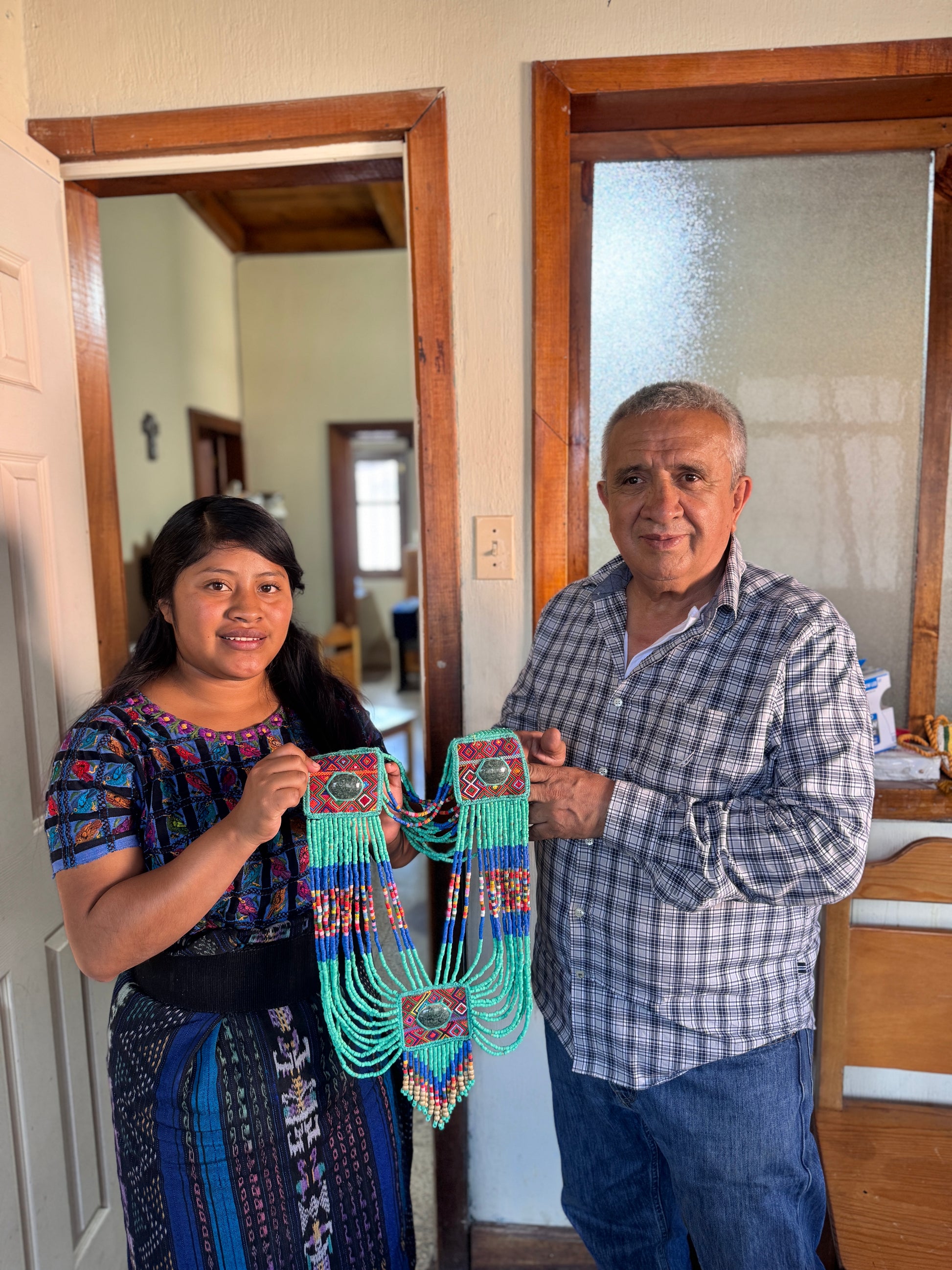 Each section is anchored by ceremonial textile patches from Aguacatán. These specific sacred textiles are used in traditional ceremonies of the Mayan. They are not only rare, their intricate geometrical pattern is full of ancestral meaning and intention.