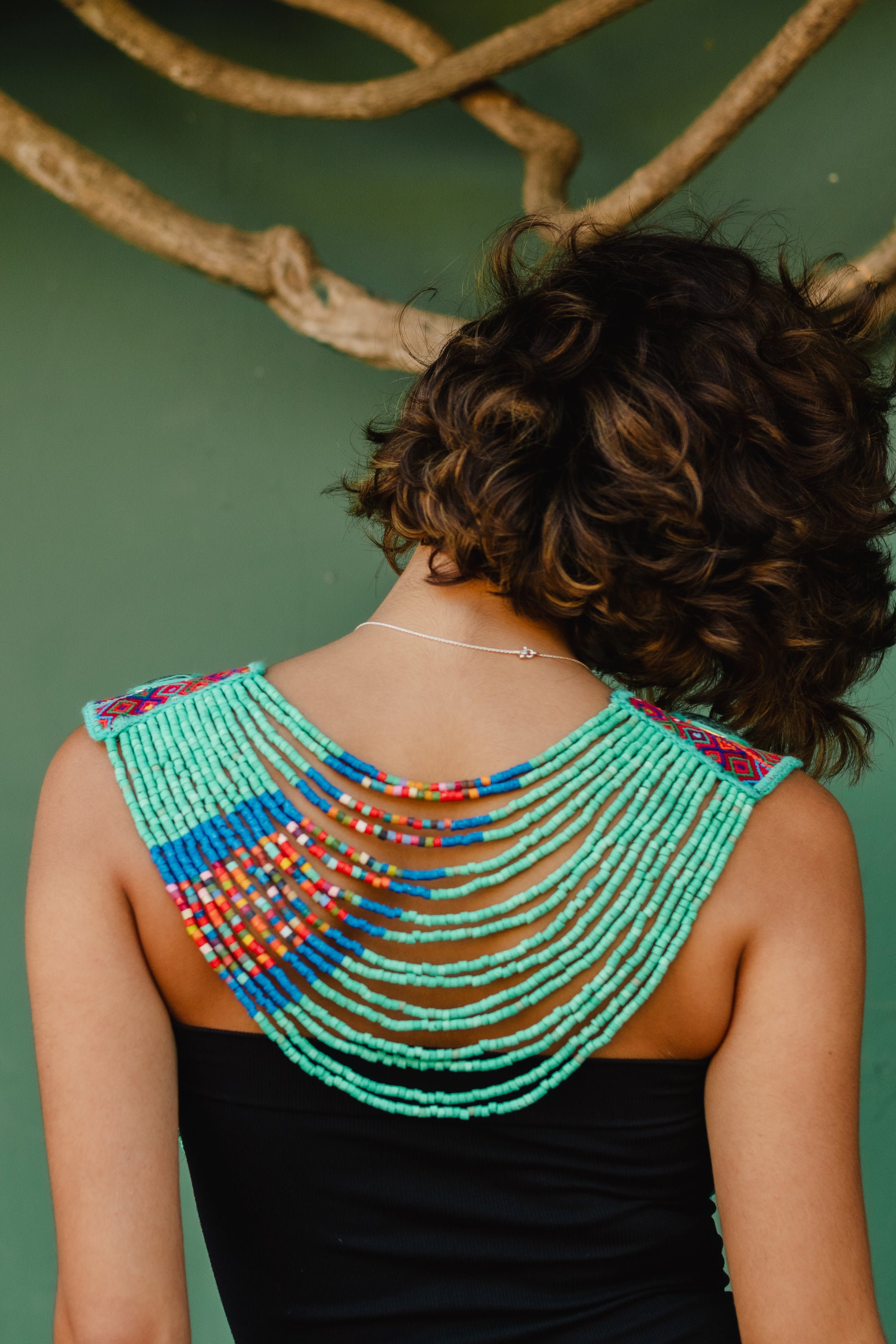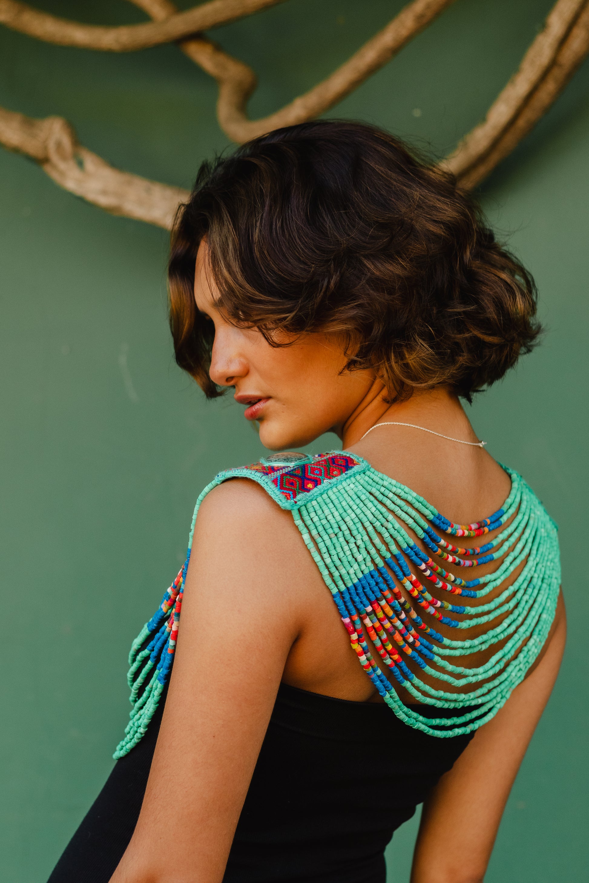 This is the only accessory you need. Bold, sacred, and stunning—our Warrior Goddess Shoulder Piece is a work of wearable art handcrafted by our talented Mayan artists and artisans in Guatemala.