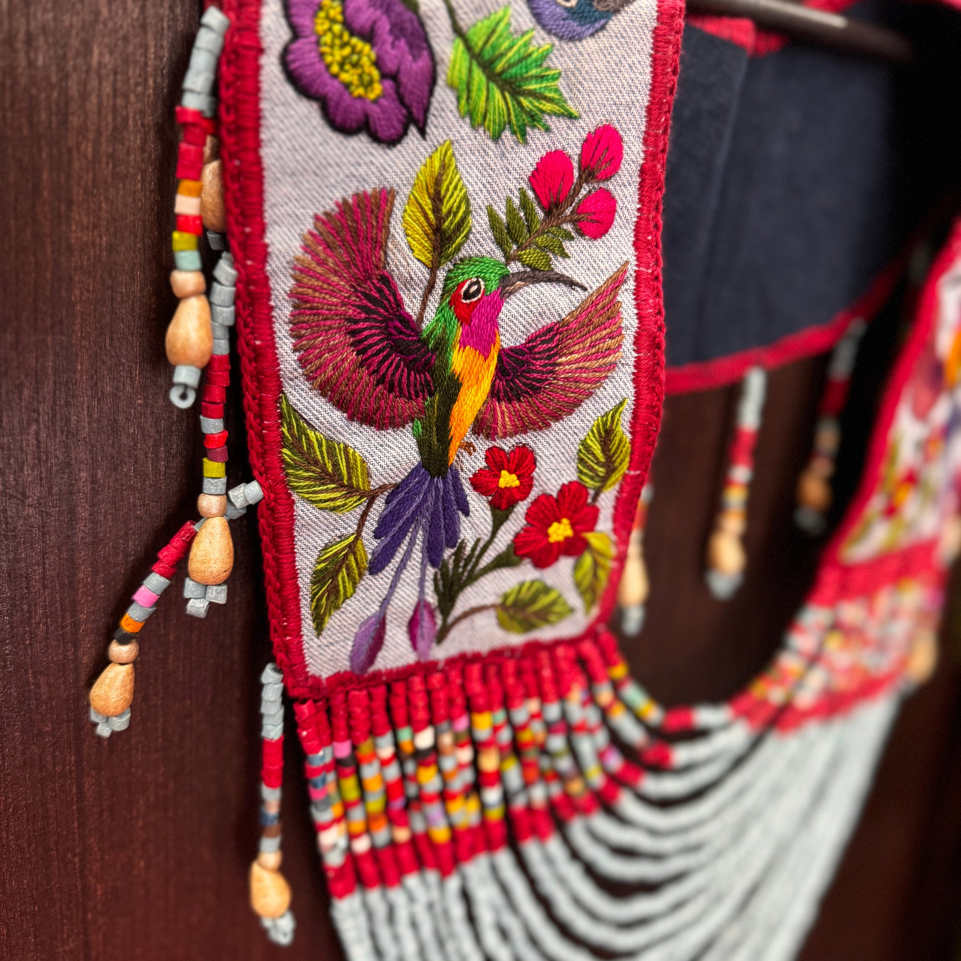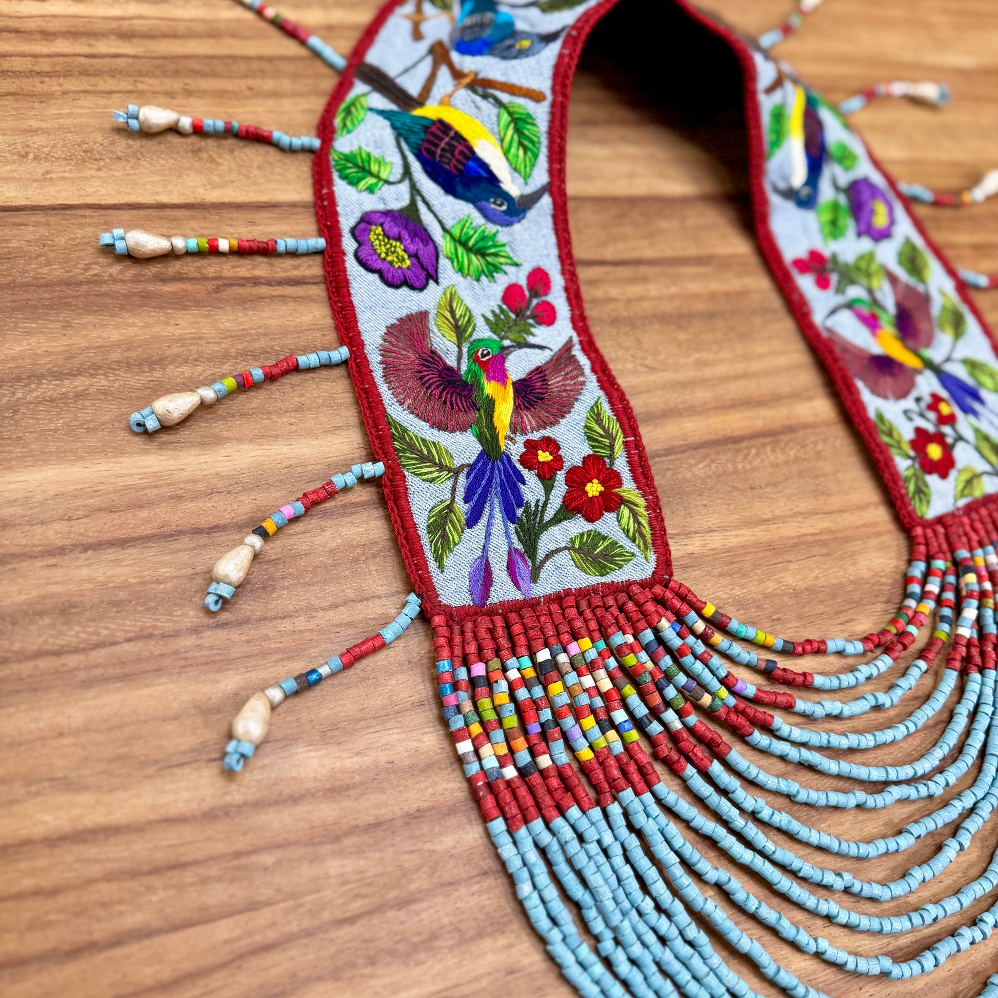 Todas nuestras Piezas de Pechera Ceremonial Aguacatán están hechas a mano de abajo hacia arriba en Guatemala por artesanos mayas.