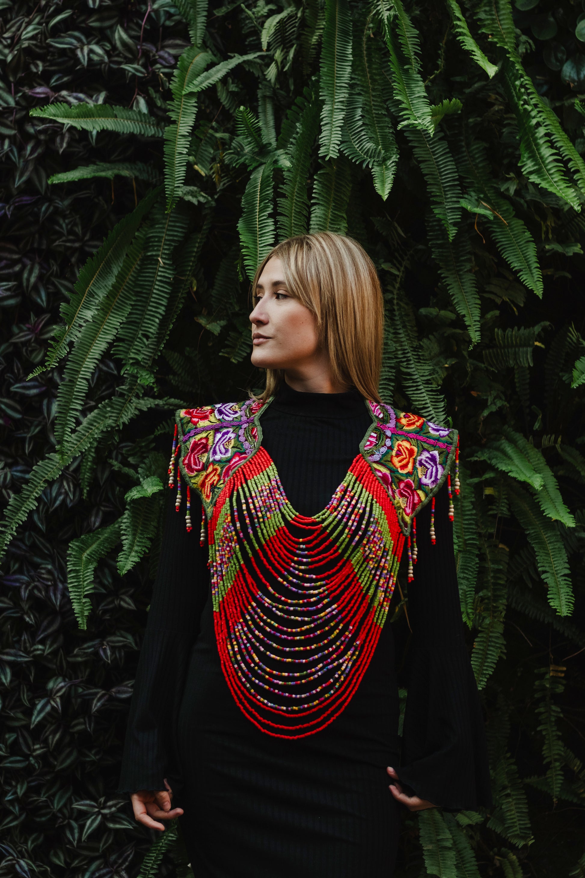 Make a statement with our Huipil Capa Shoulder Piece, a unique fusion of tradition and contemporary design. Handcrafted from upcycled Mayan huipil textiles, each piece carries the rich history of indigenous communities, featuring intricate patterns that reflect their vibrant culture. Every scrap is honored—transformed into textile earrings, bracelets, and now, this stunning wearable art.