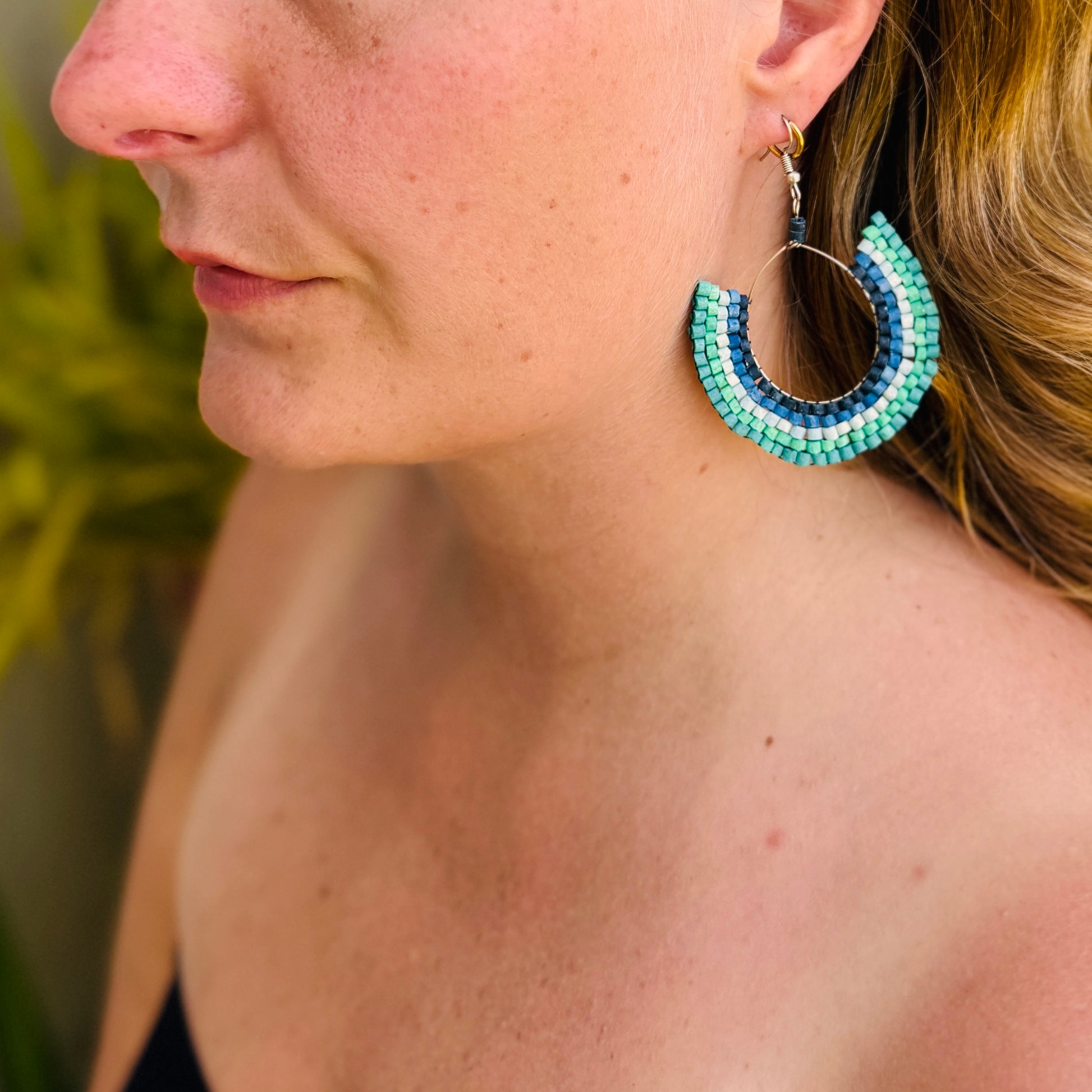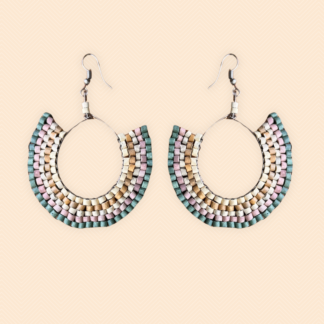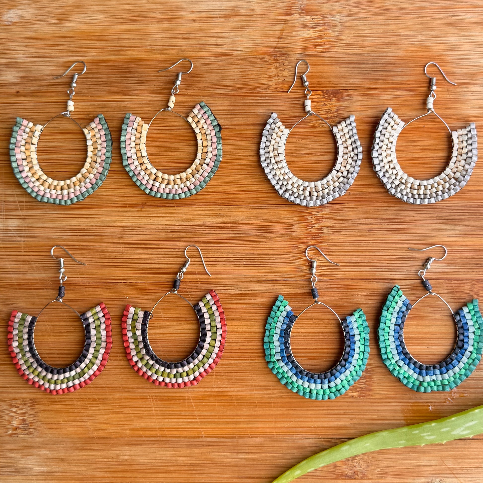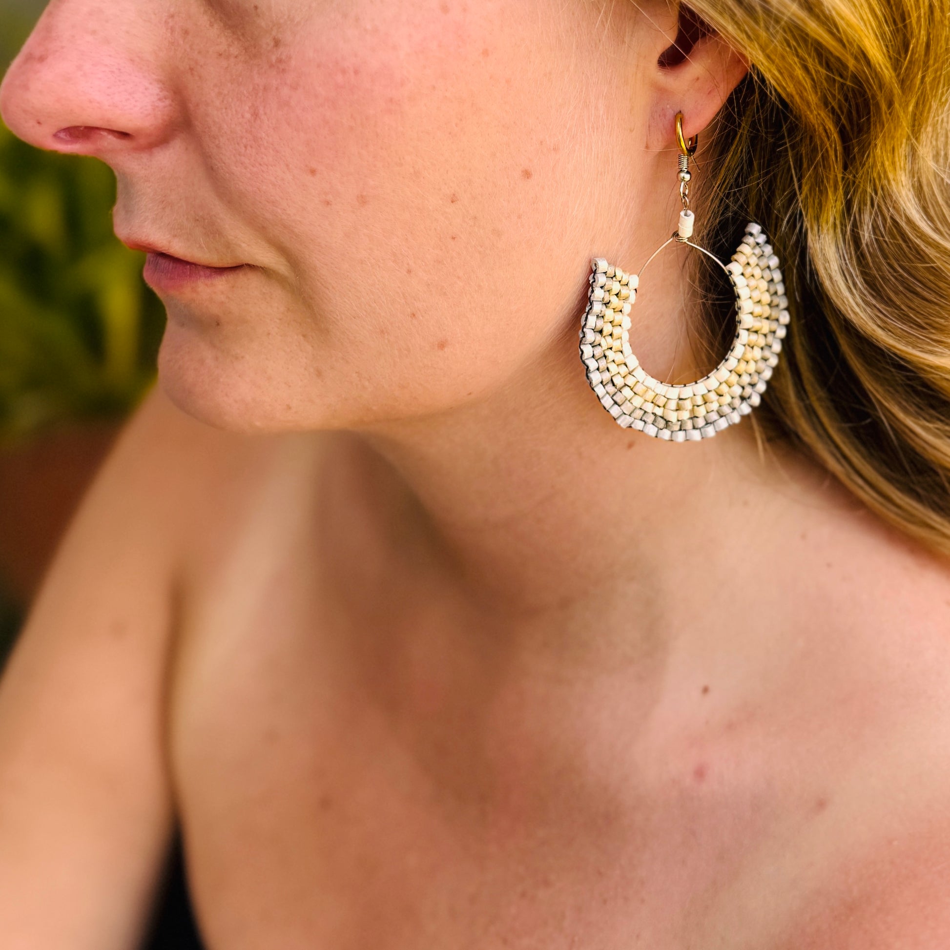 Handmade Beaded Crescent Earrings – Ethically Crafted in Guatemala