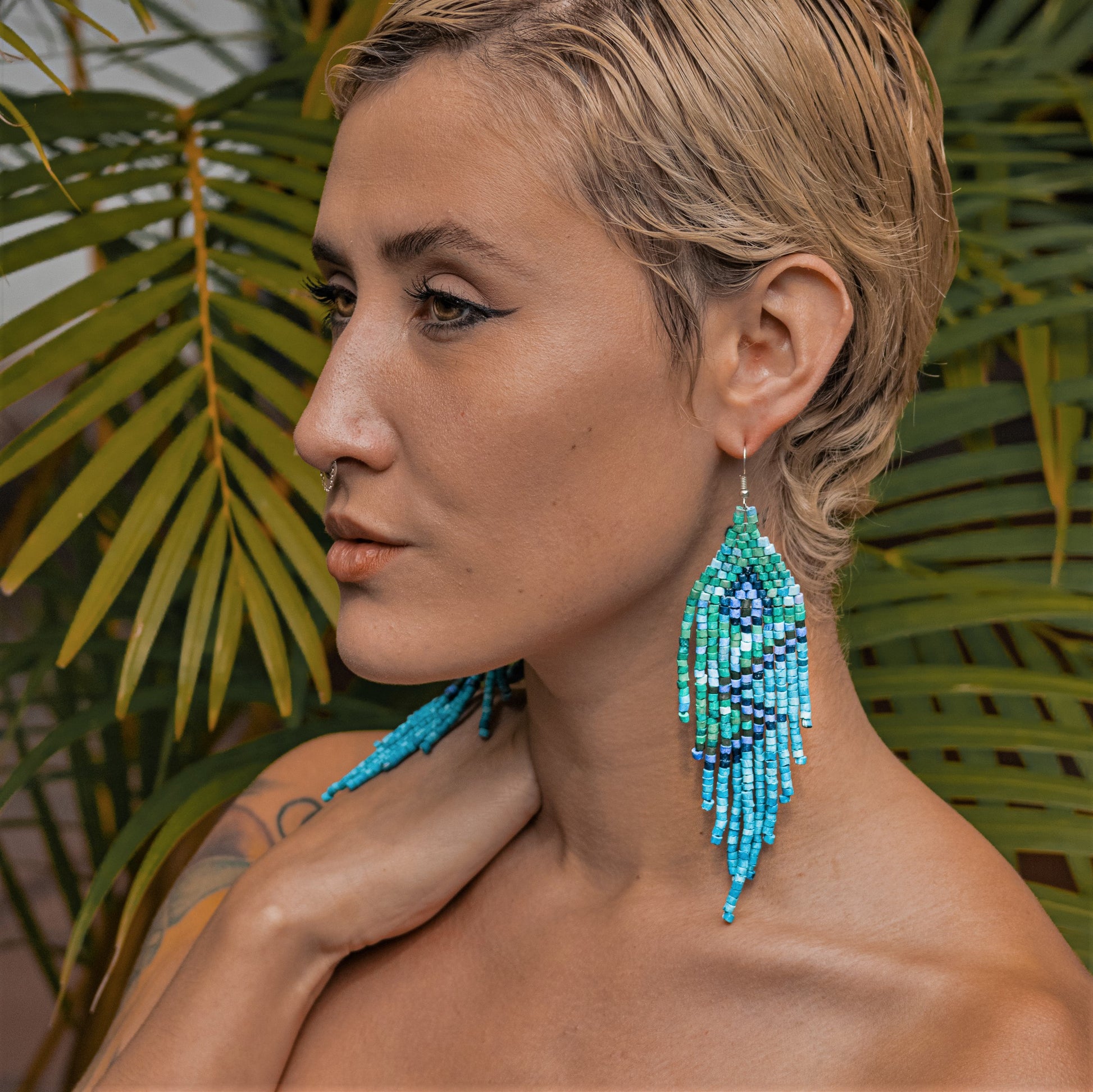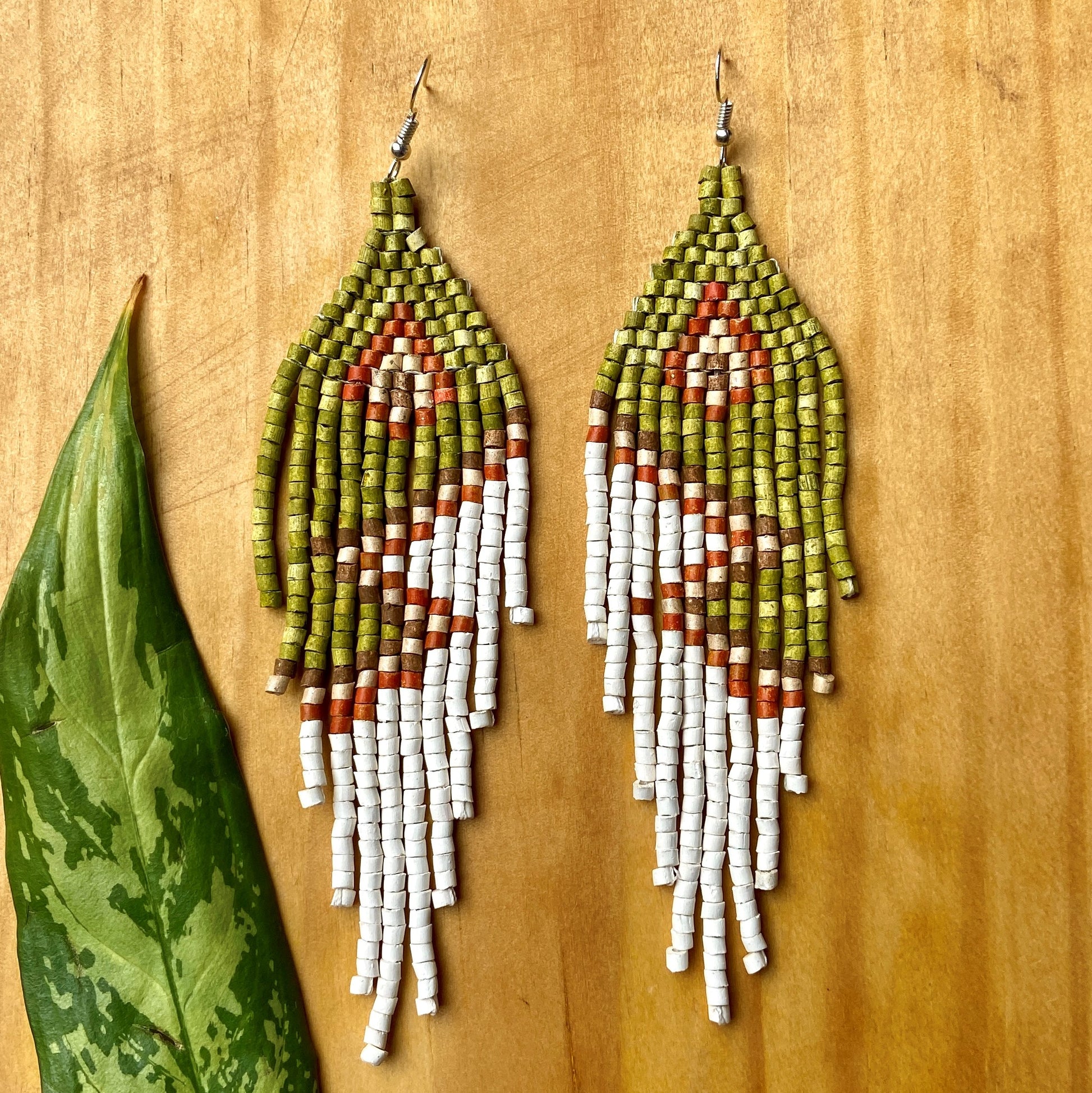 ⚡ These hand-beaded earrings are made with our unique ceramic beads. These are slightly more slim and slightly longer than our classic Tikal design. With this woven and dangling earring you will get a hint of elegancy added to your Tikal earring collection.